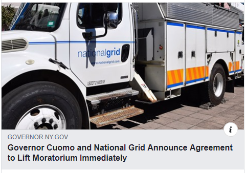 Governor Cuomo and National Grid Announce Agreement to Lift Moratorium Immediately